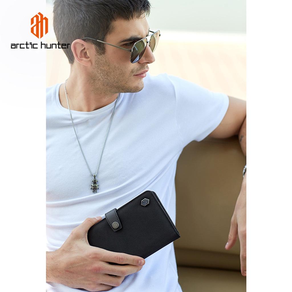 ✨Ví nam cầm tay Arctic Hunter Q00010 dáng dài dập vân có nút bấm