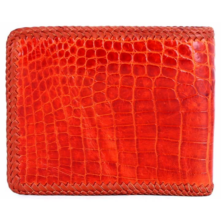 Bóp/Ví da cá sấu Huy Hoàng đan viền da bụng màu đen, nâu đất, nâu đỏ, vàng bò 2254-2711-2712-2713