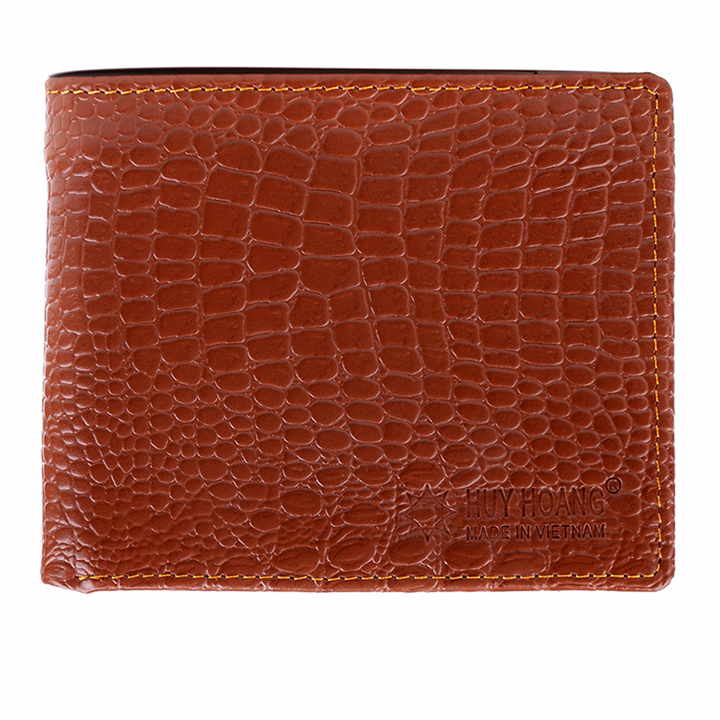 Ví/Bóp nam Huy Hoàng da bò vân cá sấu màu nâu 2112