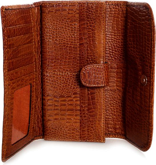 Ví/Bóp nữ da bò Huy Hoàng vân cá sấu lớn 3 gấp màu nâu đỏ 3169