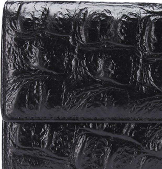 Ví/Bóp nữ da bò Huy Hoàng vân cá sấu lớn 3 gấp màu đen 3152
