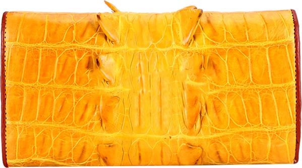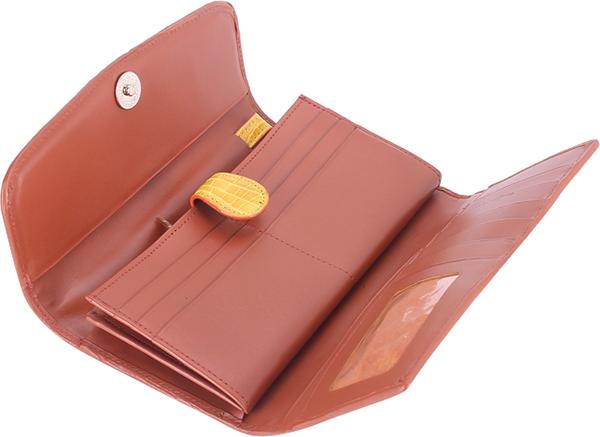 Ví/Bóp nữ da bò Huy Hoàng vân cá sấu lớn 3 gấp màu nâu đỏ 3169