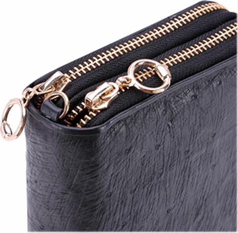 Bóp/Ví da đà điểu Huy Hoàng da bụng màu đen, nâu đất, nâu đỏ, vàng bò 2405-06-07-19