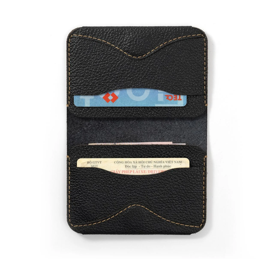CARD HOLDER HANDMADE 2 - Size : 11 x 8 x 2cm ( D x C x R ) vừa giấy tờ cũ - Chất liệu : da bò Alran bên trong lót da bò