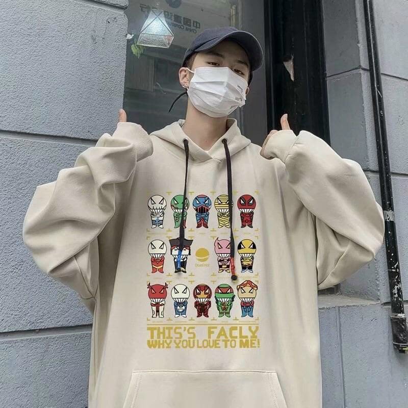 Hiền Linh Shop Áo hoodie chui đầu nỉ bông tay dài in hoạt hình cute ulzzang , Form Rộng Unisex Nam Nữ Couple Đều Mặc Được - Áo khoác nam- áo hoodie nam : chất
