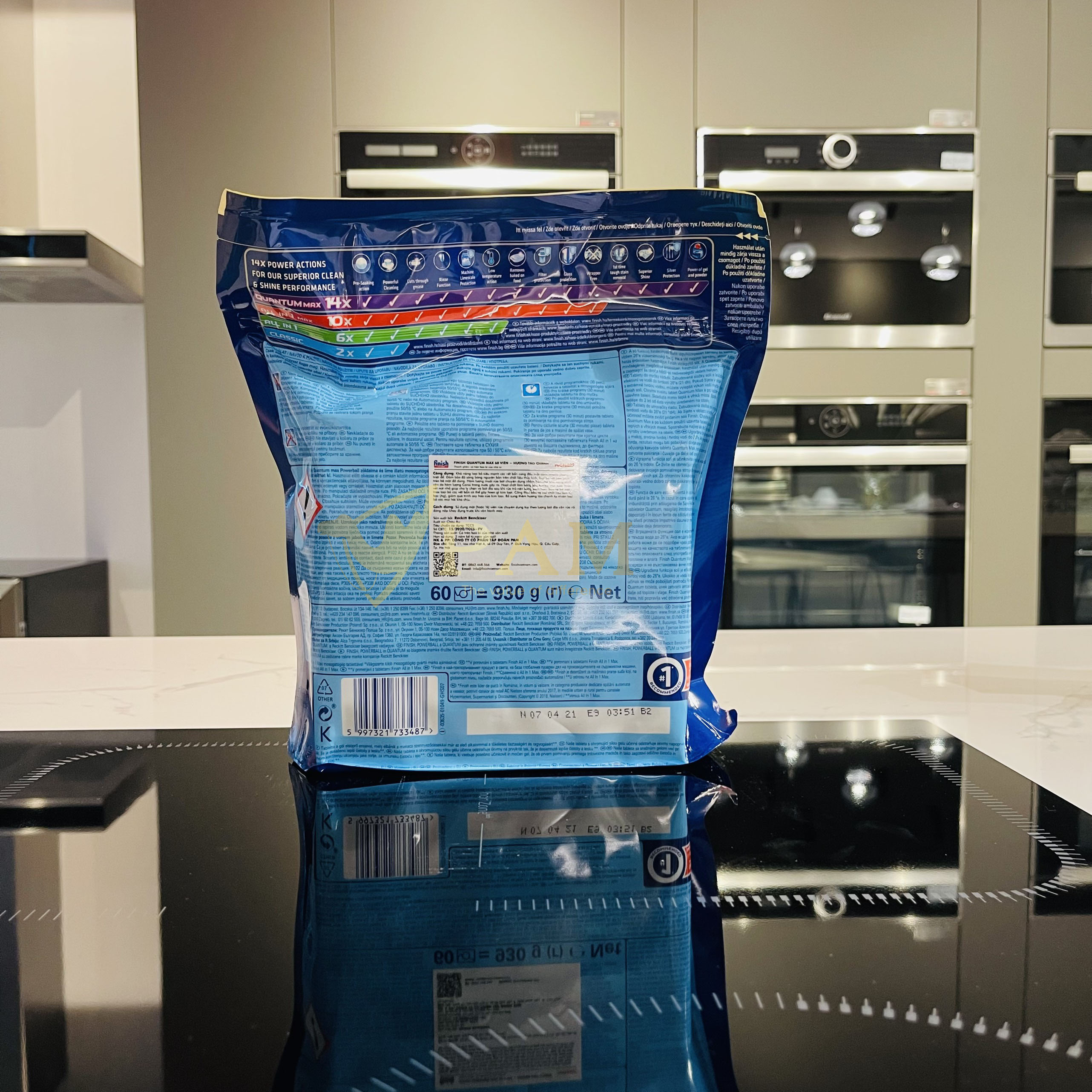 VIÊN RỬA BÁT FINISH QUANTUM MAX LÀ VIÊN RỬA BÁT CAO CẤP NHẤT HIỆN NAY VỨI 14 CHỨC NĂNG TRONG 1 VIÊN Túi 60 viên rửa chén Finish Quantum Max Dishwasher Tablets (là