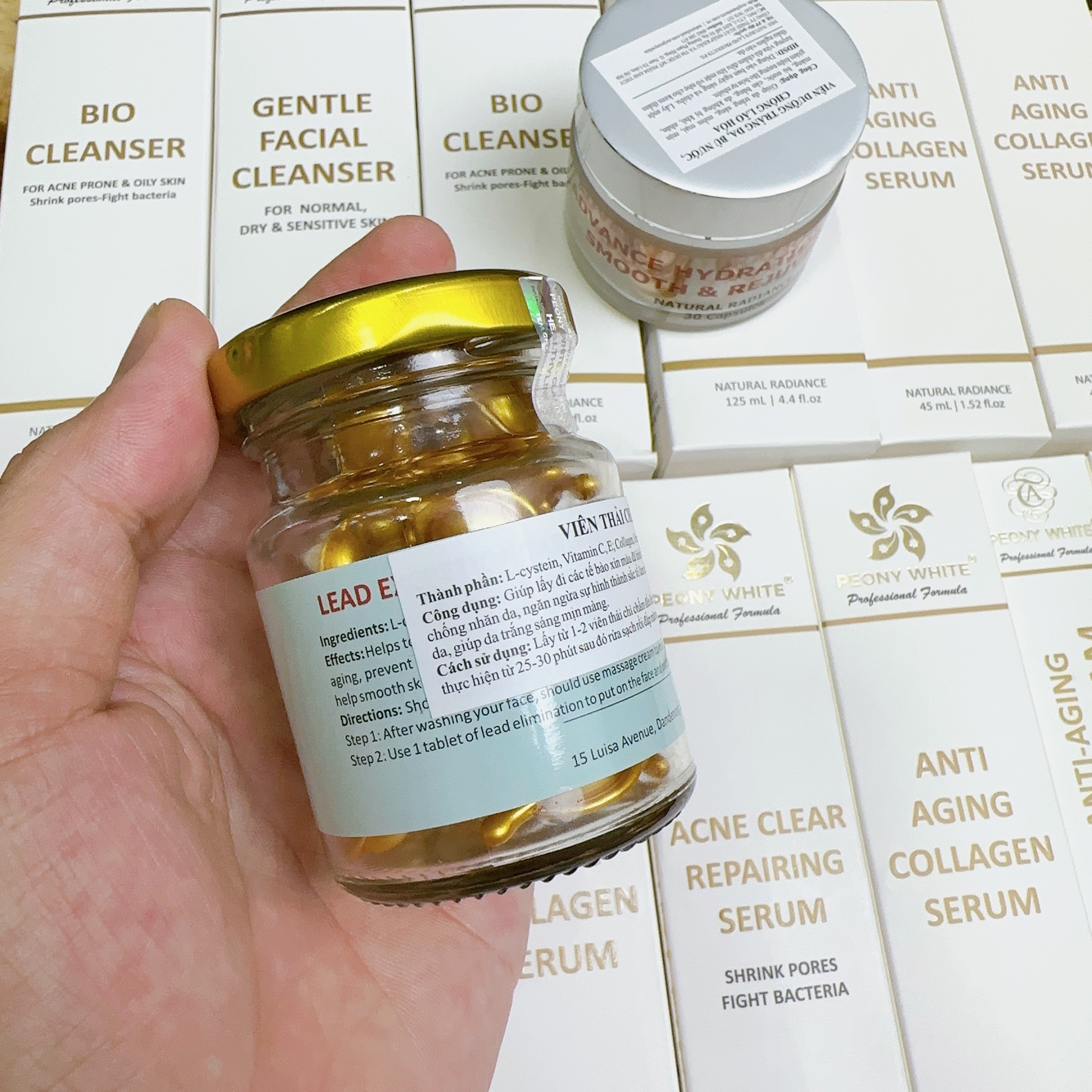 Viên Thải Chì PEONY WHITE 40v - Mờ Thâm Nám - Dưỡng Trắng Da - Giảm Tác Nhân Gây Nám - Phục Hồi - Chống Lão HóaGiúp lấy đi các tế bào đã hình thành ở biểu bì, đào thải thanh lọc chì và các độc tố tro...