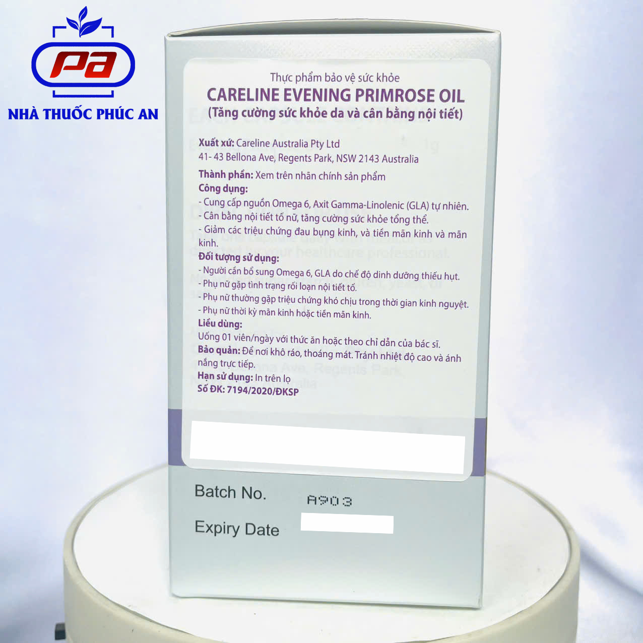 - Careline Evening Primrose Oil 1000Mg là sản phẩm tinh dầu hoa anh thảo sử dụng phương pháp ép lạnh tiên tiến, đáp ứng đầy đủ các tiêu chuẩn khắt khe từ Cơ quan Quản lý Dược phẩm Úc