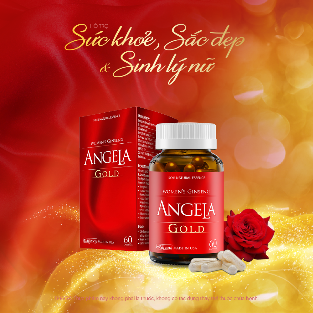 - CÔNG DỤNG CỦA ANGELA GOLD Thực phẩm bảo vệ sức khỏe Women’s Ginseng Angela Gold (Angela Gold) được tinh chiết từ nhiều thảo dược thiên nhiên bằng công nghệ hiện đại tại quốc gia lớn hàng đầu thế giới (Mỹ), nổi bật trong đó phải kể đến tinh chất thiên nhiên Lepidium Meyenii và P. Leucotomos. Nhờ đó, thực phẩm bảo vệ sức khỏe Women’s Ginseng Angela Gold có công dụng: