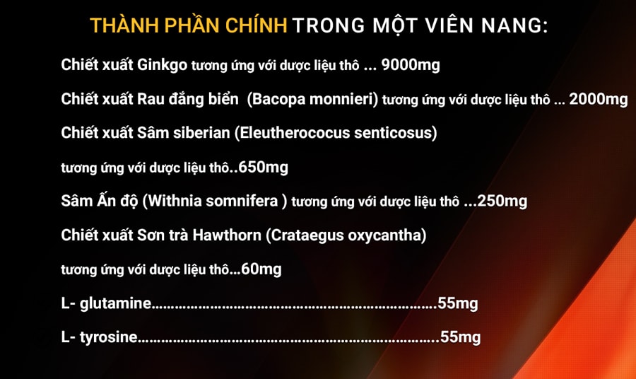 - Công thức tối ưu nhất. Bạn khó có thể tìm được một sản phẩm bổ não kết hợp giữa hàm lượng Ginkgo cao (chiết xuất Ginkgo 9000mg) với chiết xuất Rau đắng biển (Bacopa monnieri) và chiết xuất Sâm siberian (Eleutherococus senticosus) trong một viên nang