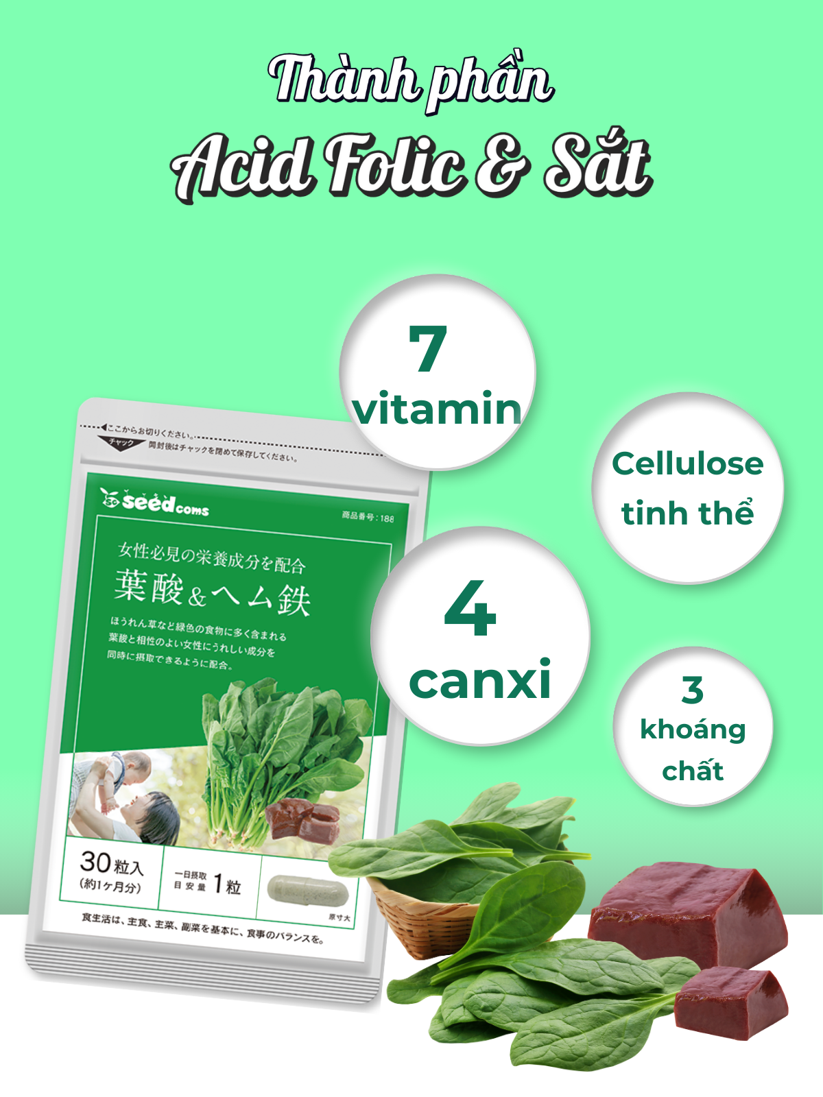 ✨Viên Uống Bổ Sung Acid Folic & Sắt Hỗ Trợ Bổ Máu Seedcoms Nhật Bản