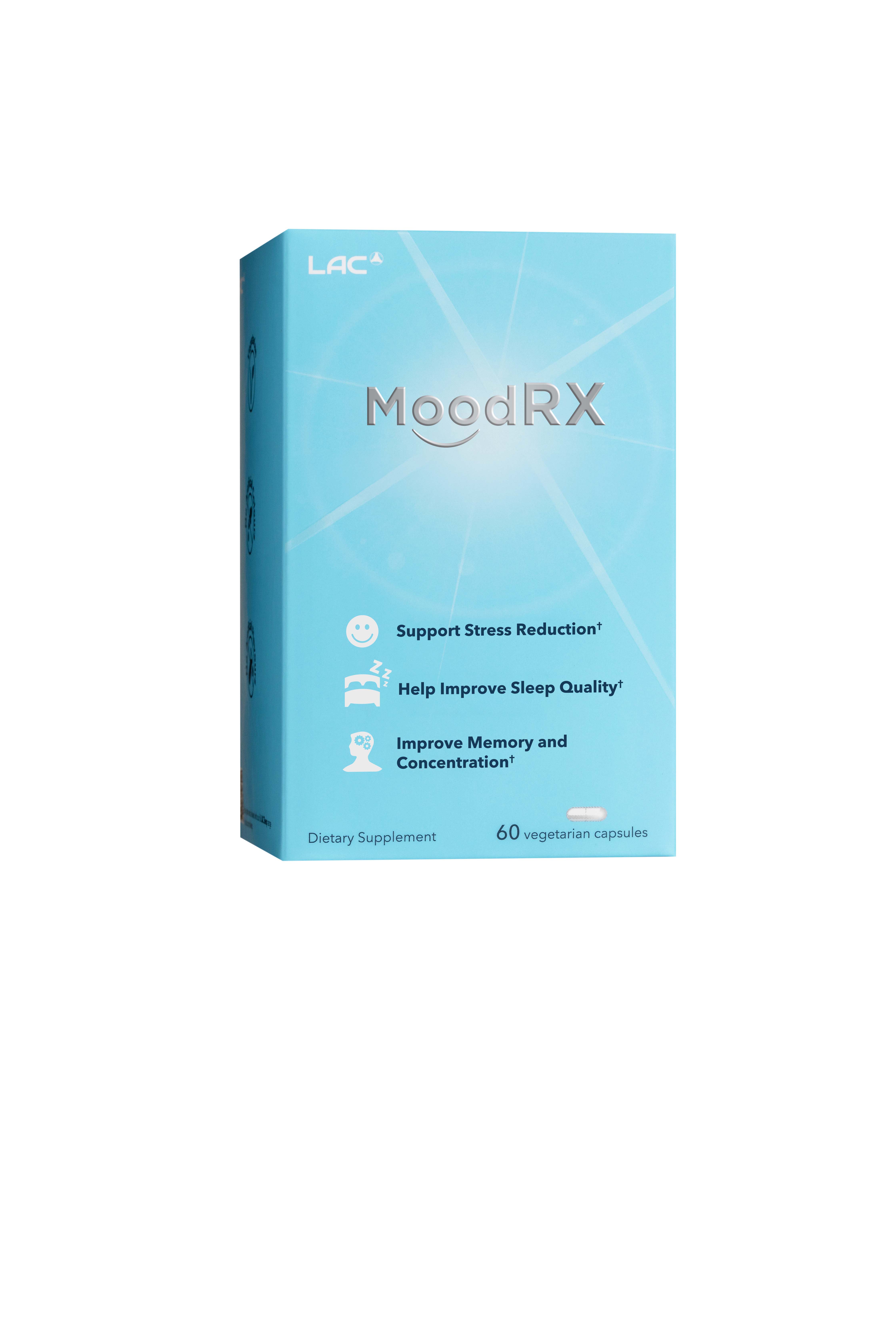 VIÊN UỐNG CẢI THIỆN TÂM TRẠNG LAC MOODRX (60 VIÊN) với công thức đặc biệt được chiết xuất từ các loại thảo dược và dưỡng chất giúp tăng cường sức khỏe tinh thần: - Ashwagandha (Nhân sâm Ấn Độ) & Rhodiola (Rễ vàng): Các adaptogen (chất thích ứng) tự nhiên giúp giảm căng thẳng, lo âu và tăng cường khả năng thích nghi với áp lực.