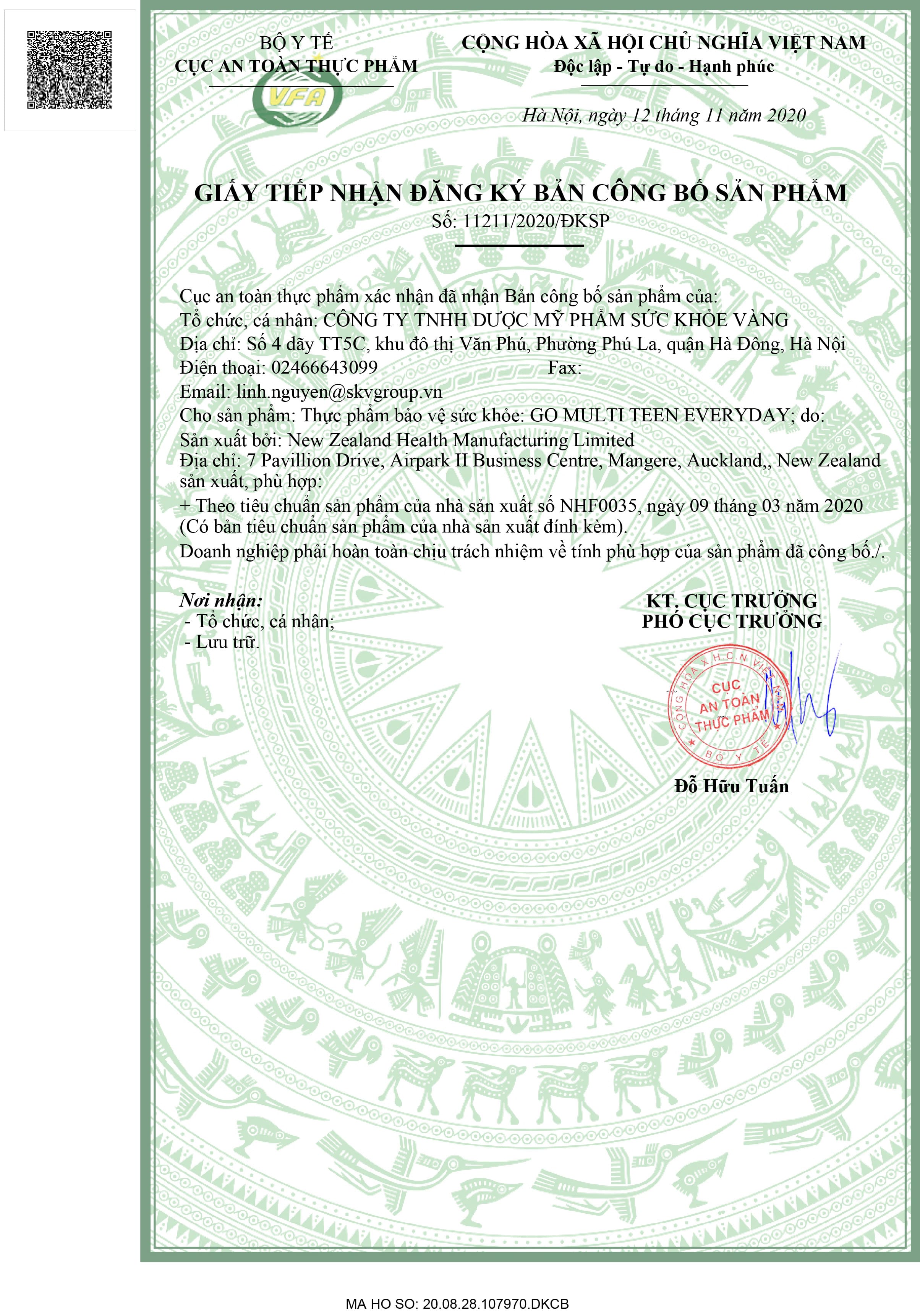 Số ĐKSP: 11211/2020/ĐKSP ( Lần 2)