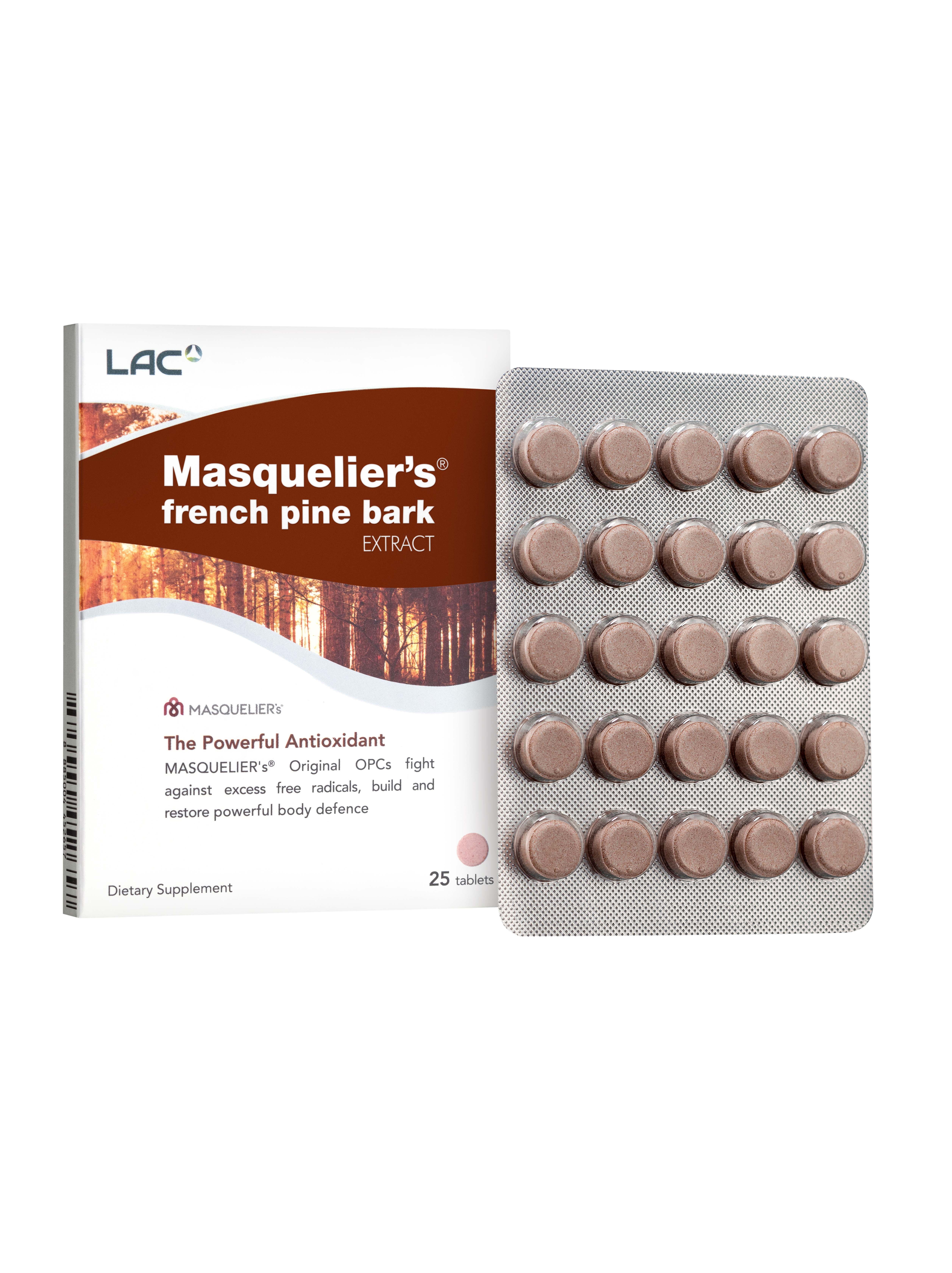 VIÊN UỐNG CHỐNG OXY HÓA LAC MASQUELIER CHIẾT XUẤT VỎ THÔNG PHÁP (25 VIÊN) với hợp chất Oligomeric Proanthocyanidin Compounds (OPCs) độc đáo được phát hiện bởi nhà khoa học đột phá - Giáo sư Jack Masquelier và là sản phẩm đầu tiên được nghiên cứu, chứng minh rộng rãi trên thế giới. Hợp chất OPCs độc đáo có trong mỗi viên nang uống giúp cơ thể đạt được liều lượng chất chống oxy hóa thích hợp thông qua cơ chế bảo vệ ba tác động an toàn nhằm: