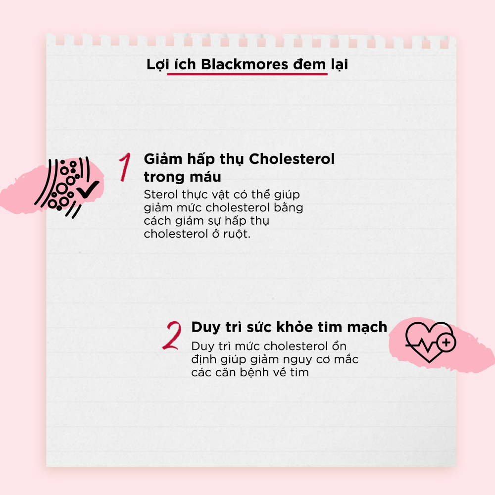 Viên uống Blackmores Cholesterol Health chính là sự lựa chọn hoàn hảo cho những ai muốn duy trì mức cholesterol khỏe mạnh. Viên uống giúp cung cấp thành phần sterols thực vật nhằm làm hỗ