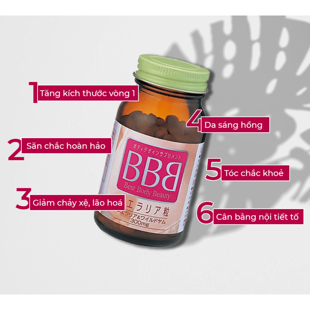 - Hỗ trợ những người luyện tập thể thao hoàn thiện vóc dáng, sức khoẻ và giữ dáng sau khi ngưng tập luyện. Có thể sử dụng lâu dài, giúp tiết kiệm chi phí và không gây đau đớn như phẫu thuật thẩm mỹ. Sản phẩm bào chế từ các thành phần tự nhiên, không làm tăng cân, an toàn, không gây kích ứng. - Cân bằng nội tiết tố, giảm nám sạm, tàn nhang, đẩy lùi các triệu chứng tiền mãn kinh, mãn kinh ĐỐI TƯỢNG SỬ DỤNG: - Phụ nữ cải thiện vóc dáng sau khi sinh và cho con bú. - Phụ nữ muốn cải thiện vòng 1. THÀNH PHẦN: Elastin, Khoáng aqua, Bột sữa ong chúa khô, Chiết xuất isoflavone đậu nành, Bột chiết xuất maca, Sắt, Vitamin D, Axit folic,... HƯỚNG DẪN SỬ DỤNG: - Một ngày 10 viên : 3 viên sau mỗi bữa ăn, 1 viên trước khi đi ngủ.