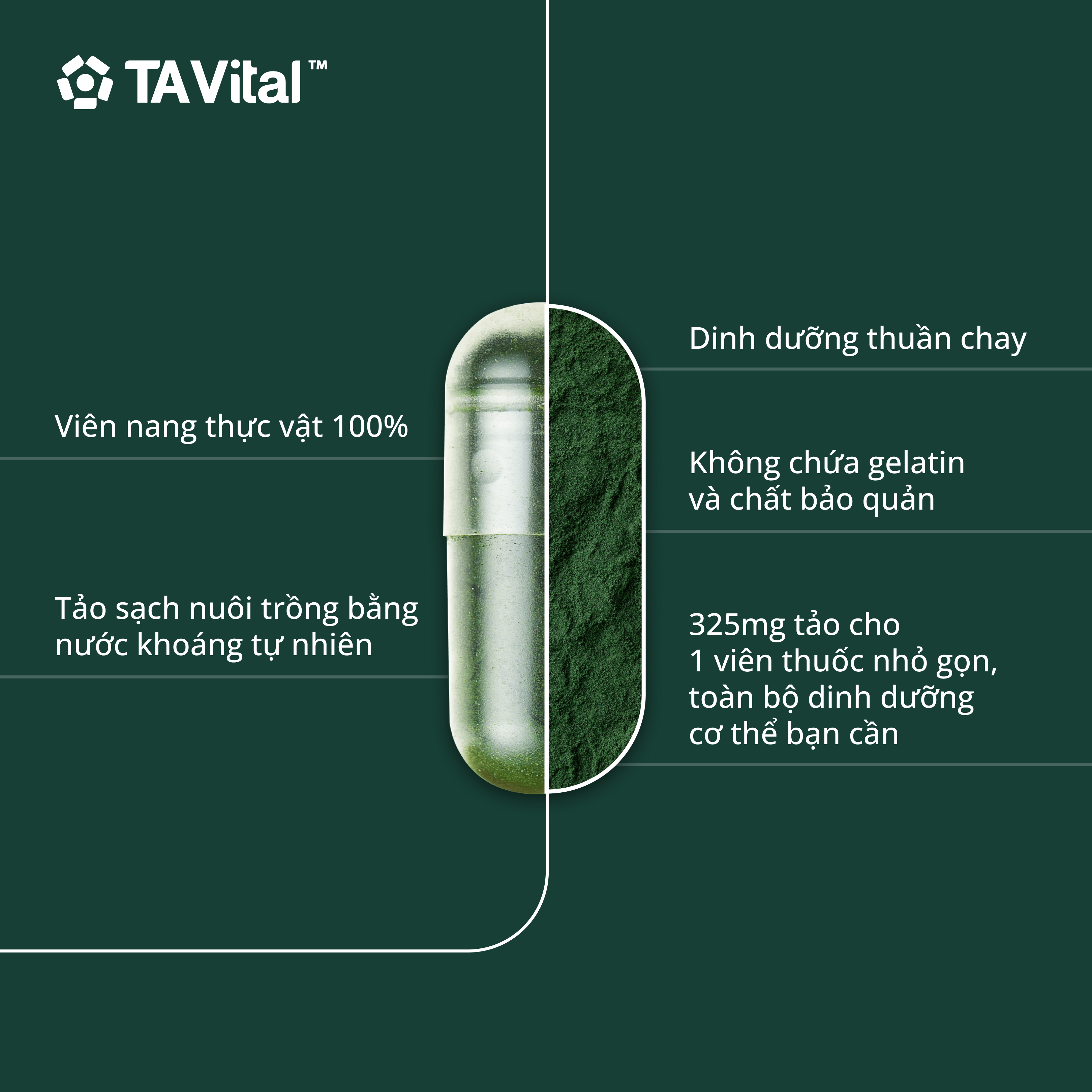 Viên Uống Tảo Xoắn TA Spirulina Thiên Nhiên Từ Singapore - Hỗ Trợ Giảm Mỡ Máu, Tăng Cường Sức Đề Kháng Cho Mọi Lứa Tuổi Hộp 60 Viên Viên uống Spirulina TA Vital là sản