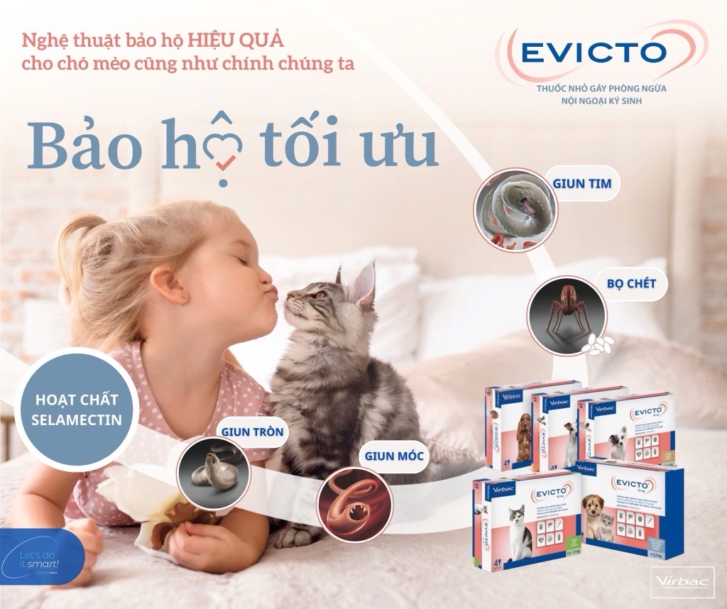 Evicto - Sản phẩm mới từ Virbac với hợp chất Selamectin, đem lại sự an toàn cho những bạn thú cưng cũng như bảo vệ sức khỏe cho cả gia đình.