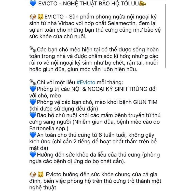 Các bạn chó mèo hiện tại có thể được sống hoàn toàn trong nhà và được chăm sóc kĩ hơn; nhưng các rủi ro về bọ chét, rận tai, muỗi, giun đũa, giun móc ... vẫn luôn hiện hữu.Evicto - Sản phẩm mới từ Vi...