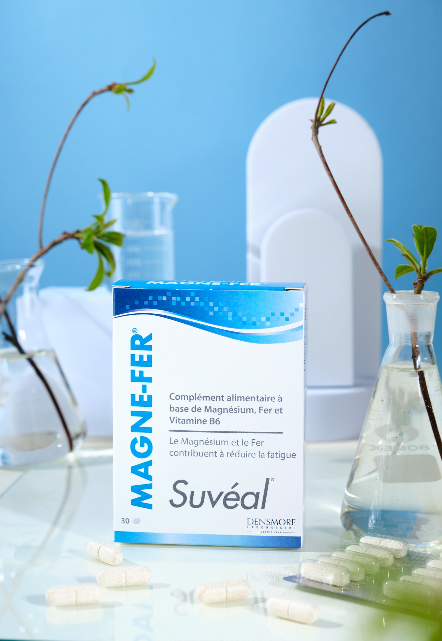 Thành phần Mg trong viên bổ Suvéal Magne - Fer có nguồn gốc từ Magie Marin tự nhiên 100% từ muối biển (cô đặc hơn 4 lần so với viên nén thông thường), kết hợp với vitamin B6 làm tăng khả năng hấp thu magie khi vào cơ thể.