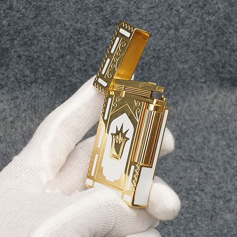 ✨Vỏ Hột Quẹt Bật Lửa Gas Đá Upon D82V Thiết Kế Họa Tiết Sơn Mài Trắng Hoa Văn Hoàng Gia Cổ Điển Độc Đáo - Dùng Gas Đá Cao Cấp