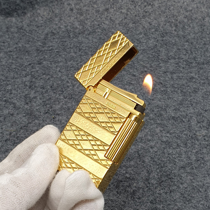 Hộp Quẹt Bật Lửa Dupont D26T Họa Tiết Kẻ Ô Vuông Tiếng Kêu Vang Và Ngân