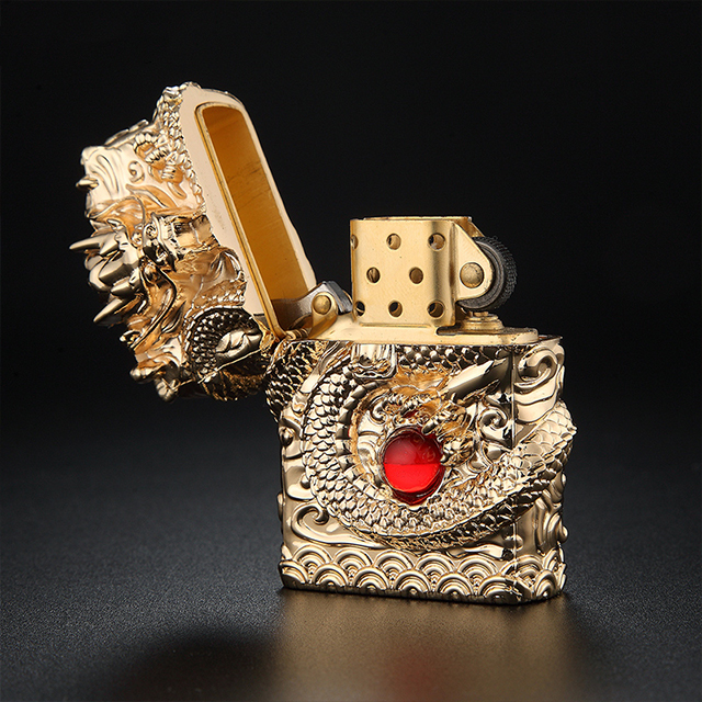 Hộp quẹt bật lửa xăng đá để bàn Chief CF206 rồng cuộn ôm ngọc. Zalo 097 232 1661 #hopquet #batlua
