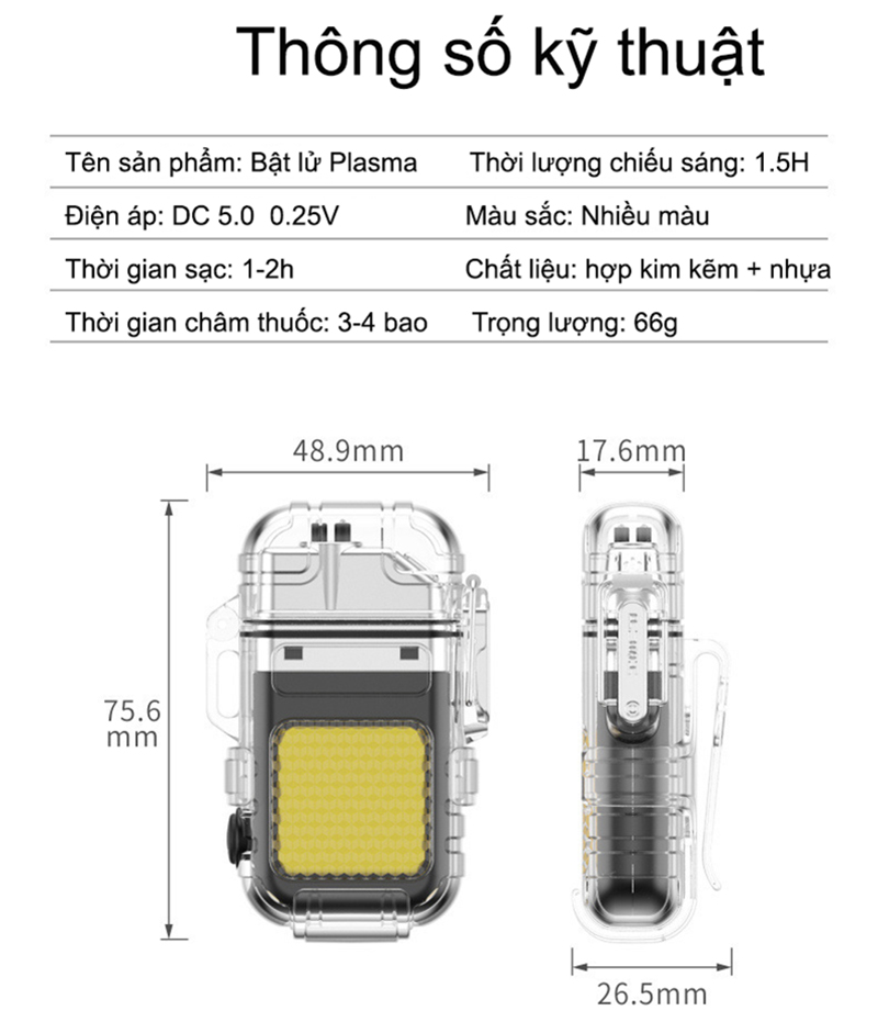Tính năng: Bật lửa kiêm đèn pin siêu sáng, có móc gài