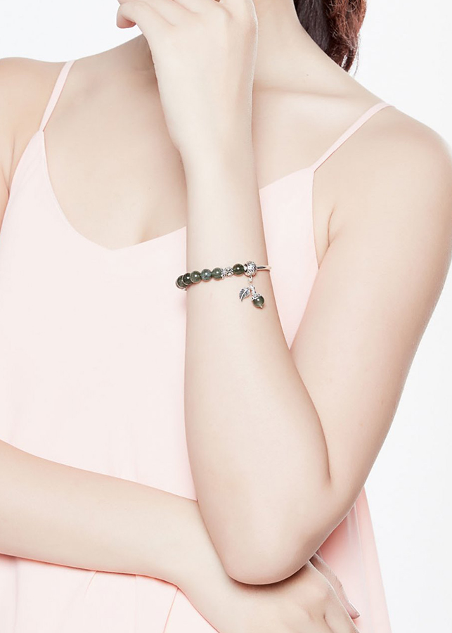 Vòng tay đá thạch anh tóc xanh phối charm bạc - Hợp mệnh mộc, hỏa | Ngọc Quý Gemstones |