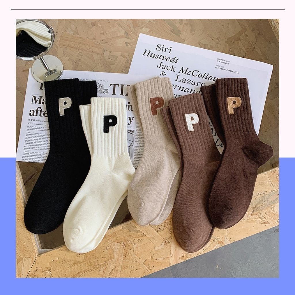 MÔ TẢ SẢN PHẨM Tất cổ cao nữ họa tiết chứ P cá tính - Vớ nữ cotton gân tăm mềm mại co giãn 4 chiều MÔ TẢ SẢN PHẨM - Màu: Đen, Trắng, Xám,