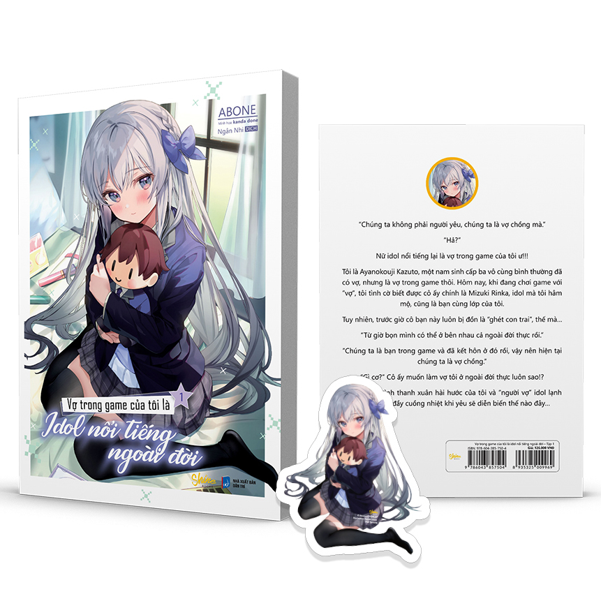 - 1 huy hiệu phủ nhũ để ở ngoài Bản thường: Tặng kèm 1 bookmark bế in 1 mặt Vợ Trong Game Của Tôi Là Idol Nổi Tiếng Ngoài Đời (Tập 1) “Chúng ta không phải người yêu, chúng ta là vợ chồng mà.” “Hả?” Nữ idol nổi tiếng lại là vợ trong game của tôi ư!!! Tôi là Ayanokouji Kazuto, một nam sinh cấp ba vô cùng bình thường đã có vợ, nhưng là vợ trong game thôi. Hôm nay, khi đang chơi game với “vợ”, tôi tình cờ biết được cô ấy chính là Mizuki Rinka, idol mà tôi hâm mộ, cũng là bạn cùng lớp của tôi. Tuy nhiên, trước giờ cô bạn này luôn bị đồn là “ghét con trai”, thế mà… “Từ giờ bọn mình có thể ở bên nhau cả ngoài đời thực rồi.” “Chúng ta là bạn trong game và đã kết hôn ở đó rồi, vậy nên hiện tại chúng ta là vợ chồng.” “Gì cơ?” Cô ấy muốn làm vợ tôi ở ngoài đời thực luôn sao!? Câu chuyện tình thanh xuân hài hước của tôi và “người vợ” idol lạnh lùng nhưng đầy cuồng nhiệt khi yêu sẽ diễn biến thế nào đây… Trích dẫn trong sách: “Tớ chỉ thích một mình cậu thôi, không phải cậu thì sẽ chẳng là ai khác nữa.” “… Kazuto…” “Yêu một ai đó chính là chấp nhận mọi thứ thuộc về đối phương, chứ không phải áp đặt những lý tưởng và kỳ vọng của bản thân lên người ấy mà.”