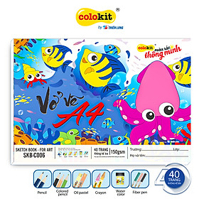 Thương hiệu Colokit Trọng lượng 220 gram Kích thước A4/ A3 Số trang 40 trang (không kể bìa) Định lượng ruột 150 gsm Độ trắng 90% Tiêu chuẩn TCCS 0105:2019/TL-VOVE Bảo quản Tránh xa nguồn nhiệt, hóa chất. Không thích hợp cho trẻ dưới 3 tuổi. Vở vẽ Sketch Book for Art Thiên Long Colokit là loại vở hỗ trợ vẽ mỹ thuật với thiết kế giấy chuyên dụng, định lượng giấy dày hơn, sử dụng tốt với các loại màu mà không sợ bị lem hay thấm.