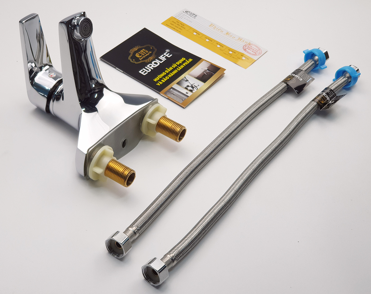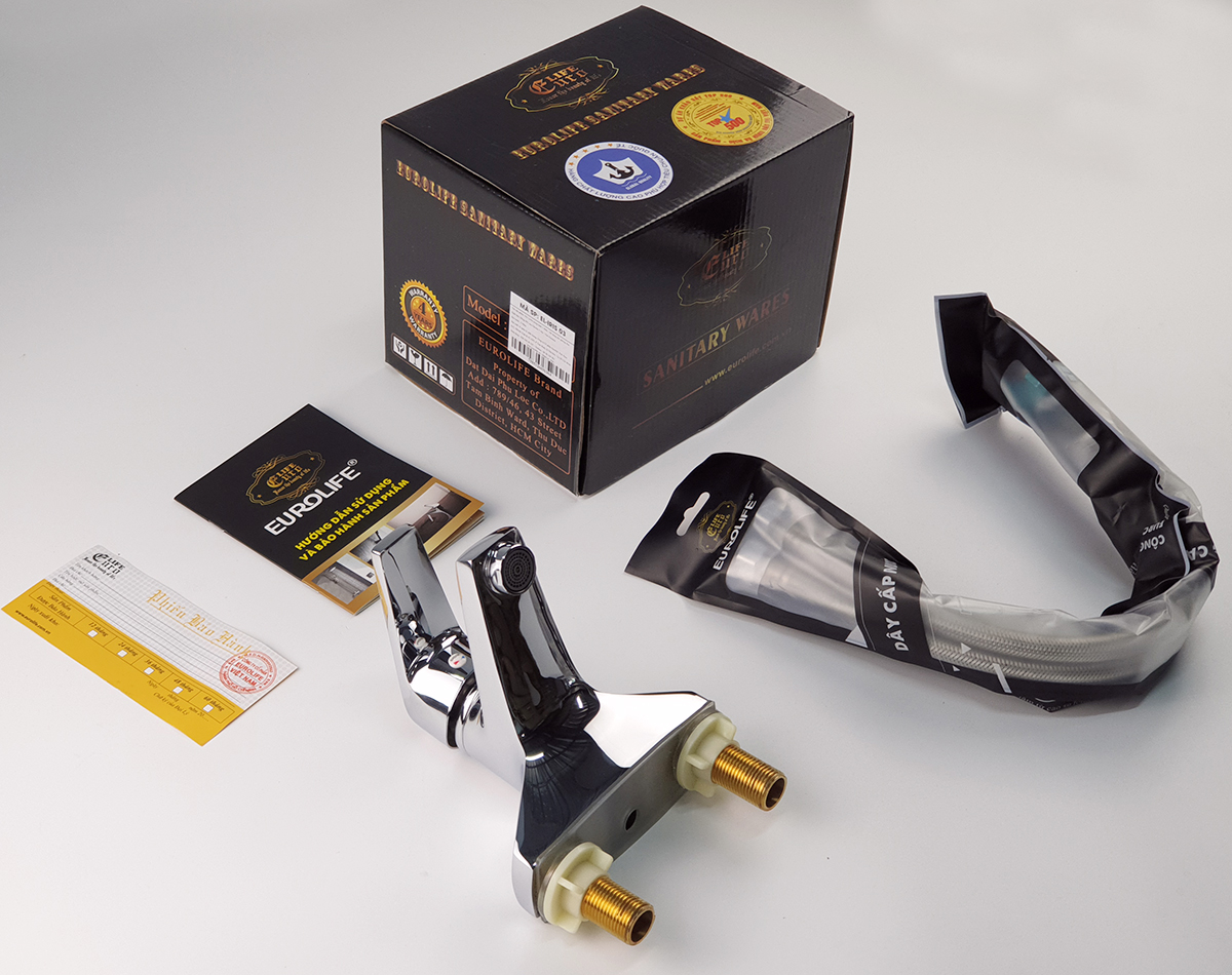 Bộ sản phẩm được đóng gói trong túi vải cotton, hộp màu riêng của Eurolife. Bộ sản phẩm đầy đủ bao gồm : Thân vòi Lavabo, 1 bát gắn, 2 roong cao su, 2 dây cấp 60cm, 1 phiếu bảo hành chính hãng.