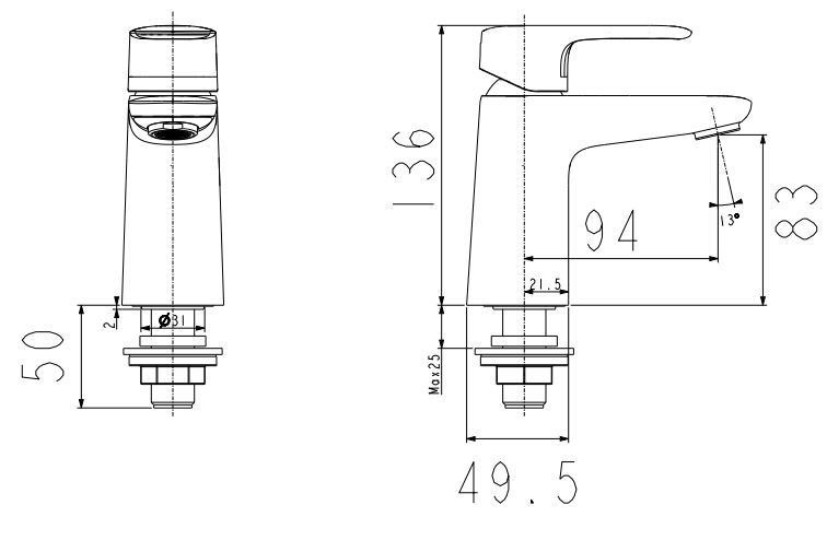 THÔNG SỐ KỸ THUẬT - Loại sản phẩm : Vòi nhấn lạnh dùng cho chậu lavabo - Chiều dài đầu vòi: 100mm - Chiều cao đầu vòi: 82mm - Áp lực nước : 0.05MPa ~ 0.75MPa