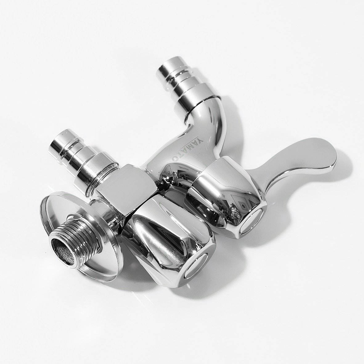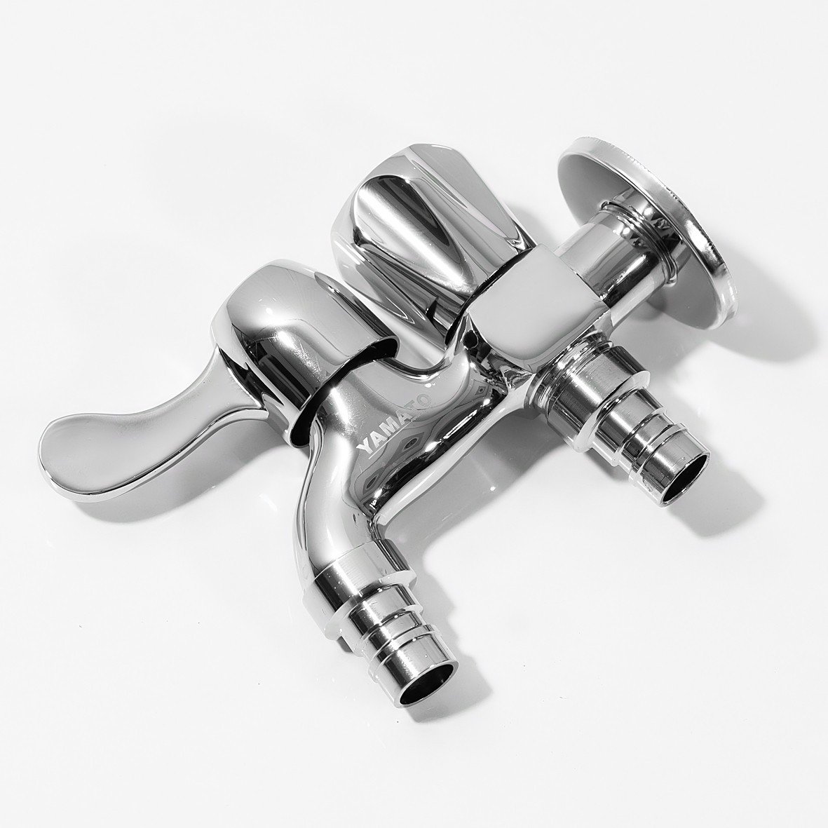 ✨Vòi nước hai đầu đồng thau mạ chorme Yamato ra có van khóa gắn tường đa năng dành cho máy giặt (Hàng chính hãng)