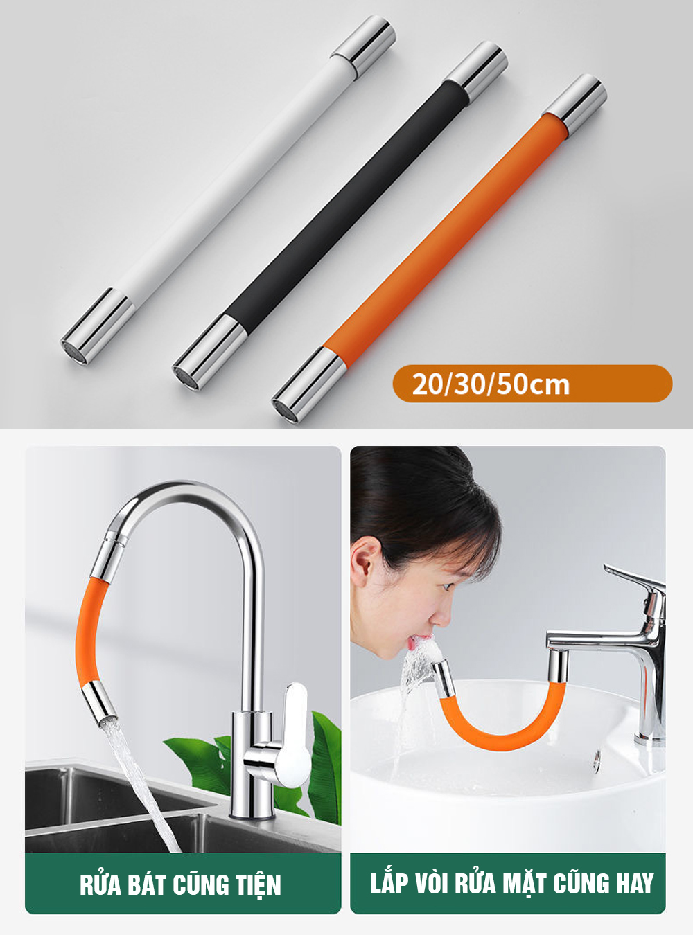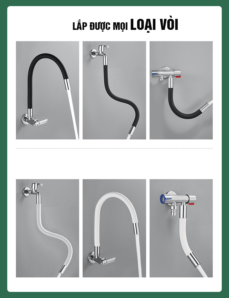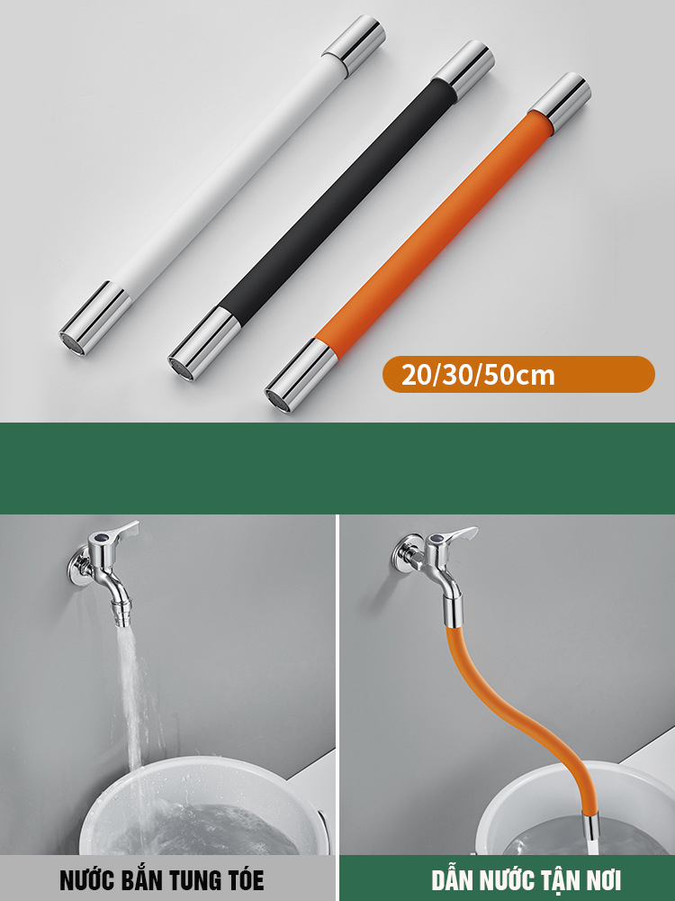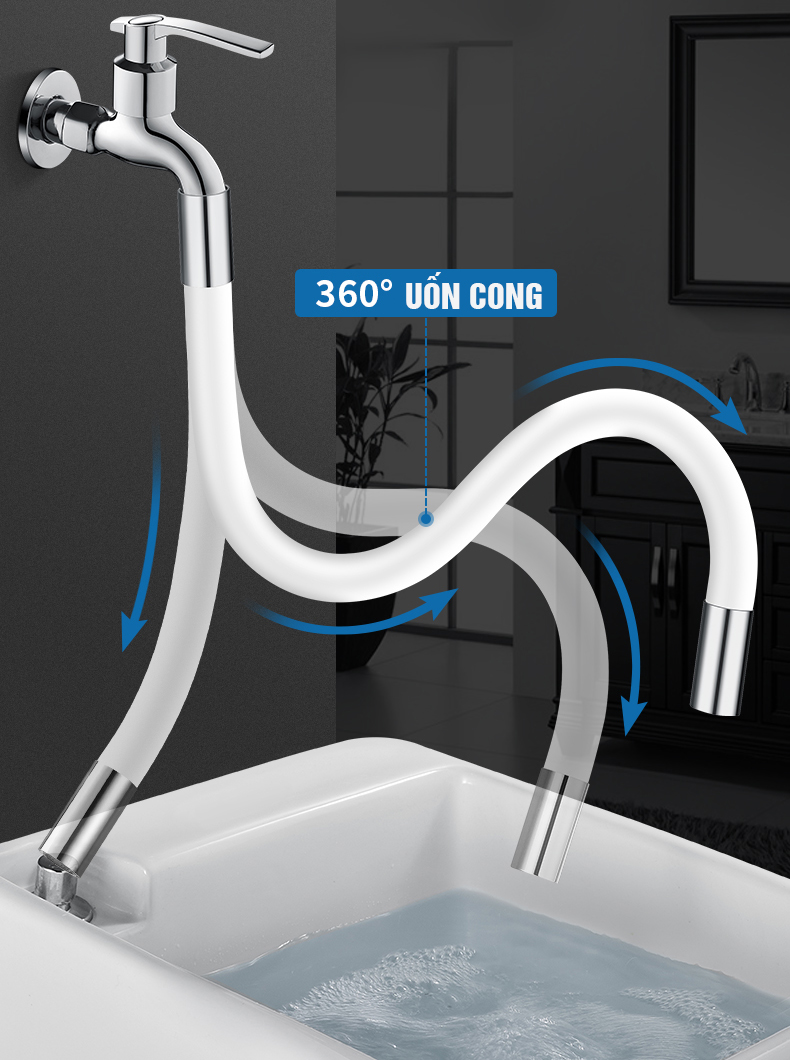 Vòi nối dài uốn cong dùng để nối từ vòi rửa mặt, vòi rửa bát, vòi gắn tường, vòi sen… xuống vị trí thấp hơn…. Ở những vị trí cao khó sử dụng mà vòi thông thường không cho nước tới được hoặc khoảng cách xa khiến nước chảy xuống tung tóe. Do đó sử dụng vòi nối dài uốn cong là 1 giải pháp cực kỳ thông minh và tiện dụng