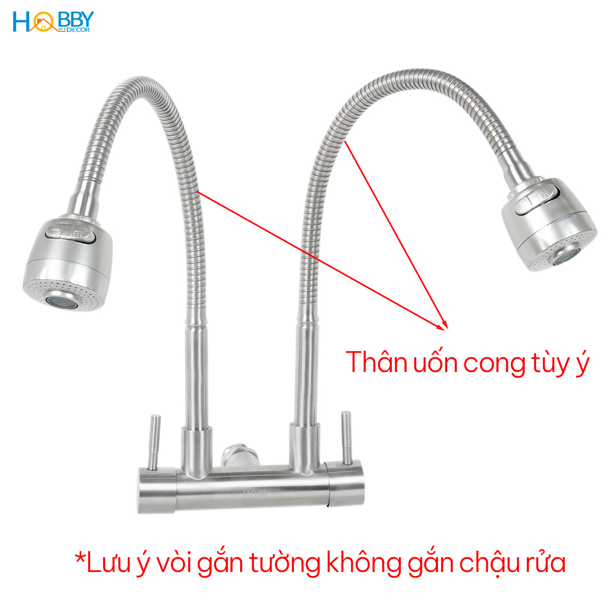 ✨Vòi rửa chén gắn tường 2 đầu xả tăng áp inox 304 Hobby home decor G2T