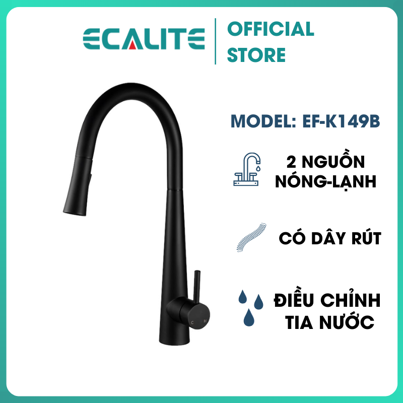 Vòi rửa chén nóng lạnh Pull-down Ecalite EF-K149B được hãng Ecalite bảo hành chính hãng 3 năm tại nhà.