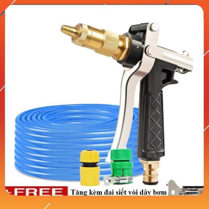 ✨Vòi Xịt️Evoucher Bộ dây vòi xịt nước rửa xe, tưới cây , tăng áp 3 lần, loại 20m 206236 đầu đồng,cút, + đai