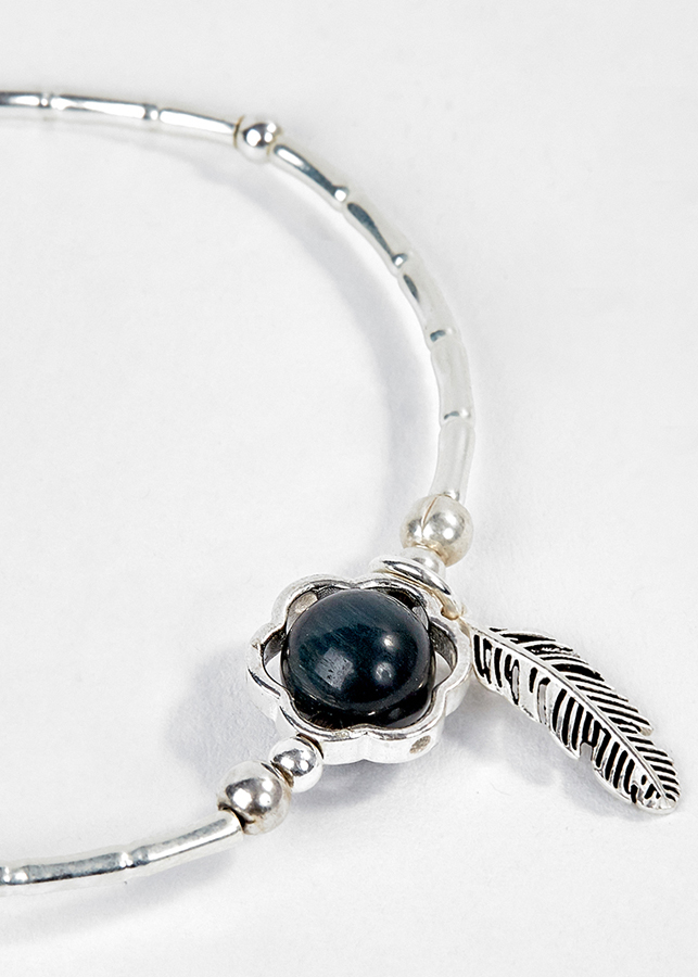 Vòng Bạc Hạt Đá Mắt Hổ Xanh Đen Phối Charm Lá Ngọc Quý Gemstones