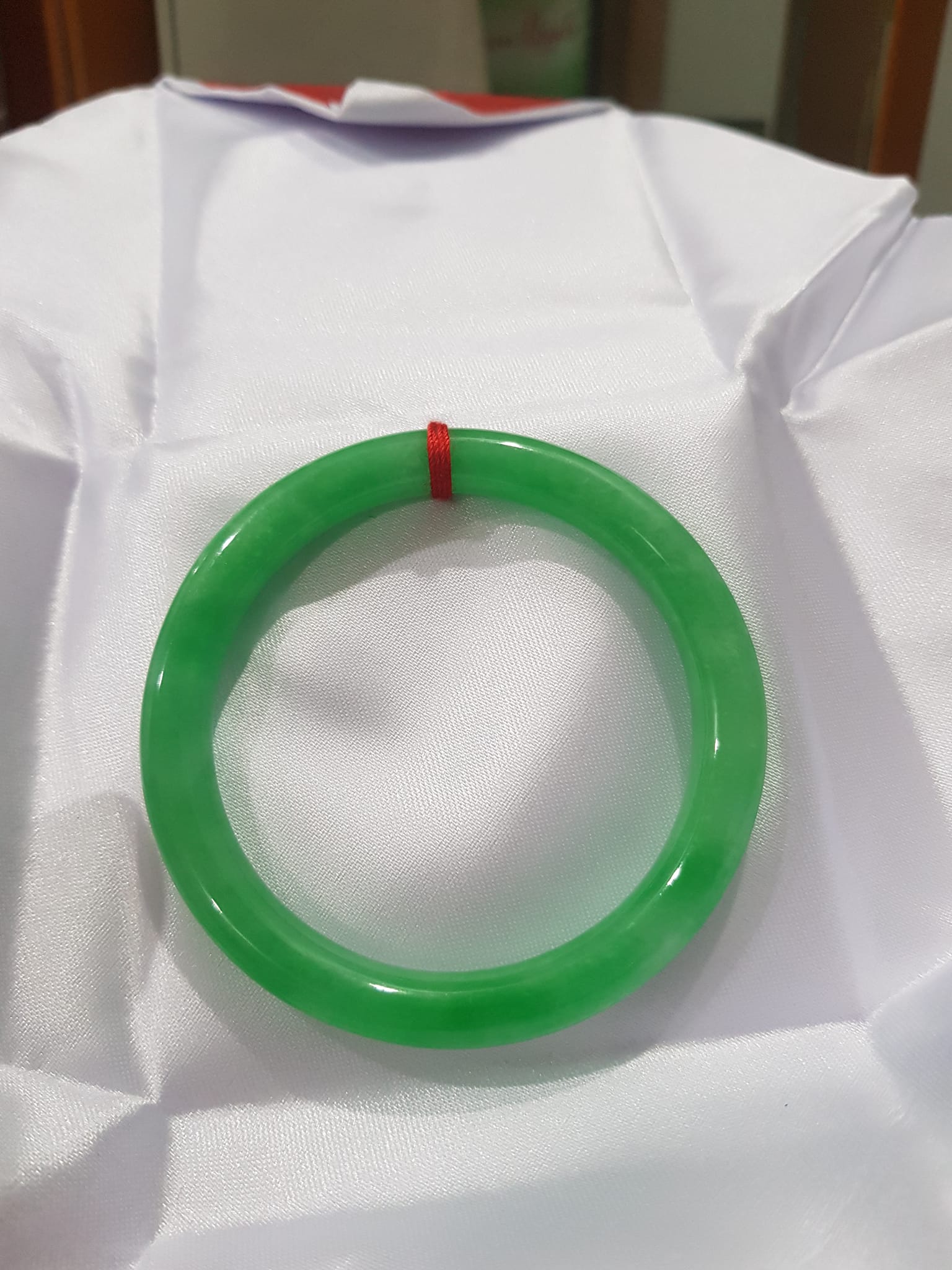 ✨Vòng cẩm thạch Đ Lý 52mm x dầy 7,8mm Vòng màu xanh lá tươi Nữ mệnh Mộc mệnh Hỏa 52kg - 56kg đeo ạ