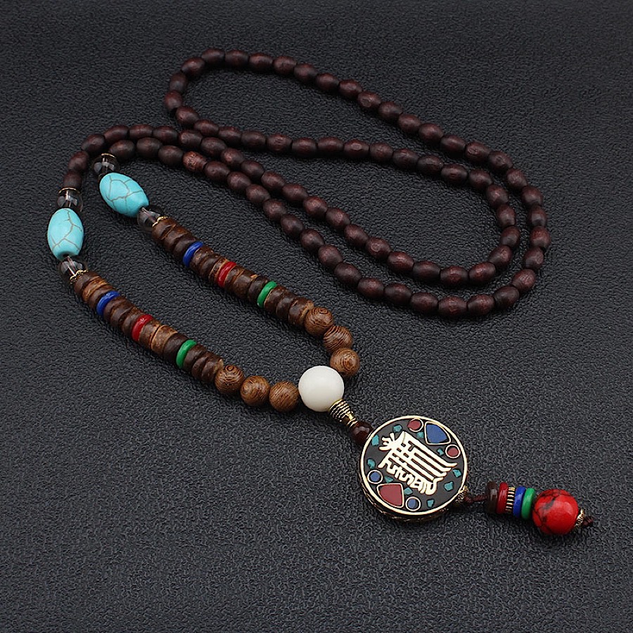 ✨VÒNG CỔ CHUỖI HẠT GỖ CHỦNG TỰ KALACHAKRA VÀ NGỌC LAM TÂY TẠNG