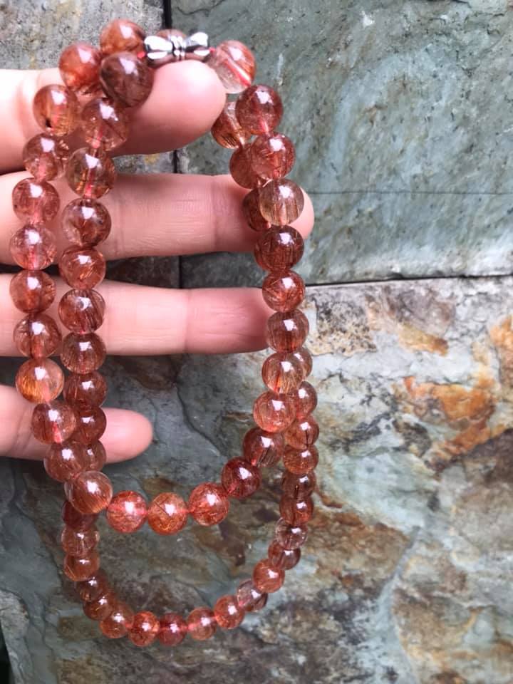 CHUỖI ĐEO CỔ ĐÁ THẠCH ANH TÓC ĐỎ VIP 8mm ANH CHỊ MỆNH HOẢ THỔ ĐEO SANG LẮM-Hàng Phong Thủy Sunny Q8