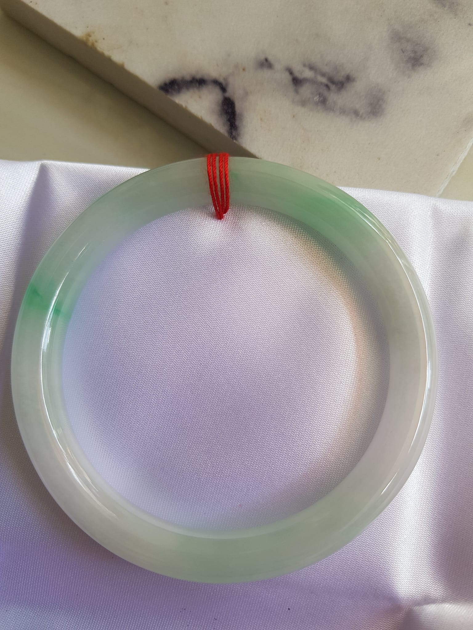 Vòng tay Nữ Đá Cẩm Thạch mới TR Lý 57 mm x cọng 7,5mm Màu Xanh lý tươi trắng 2 bên đều vòng đẹp Nữ 55kg - 64kg đeo đẹp món quà tặng chính mình