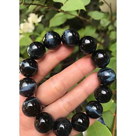 Vòng tay Nam đá mắt hổ tự nhiên đen xanh bóng đẹp 16li 13 hạt cung sanh hợp các anh mạng thủy mộc ạ