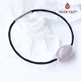 Vòng tay Lu Thống đá THẠCH ANH HỒNG mix dây thép bọc vải
