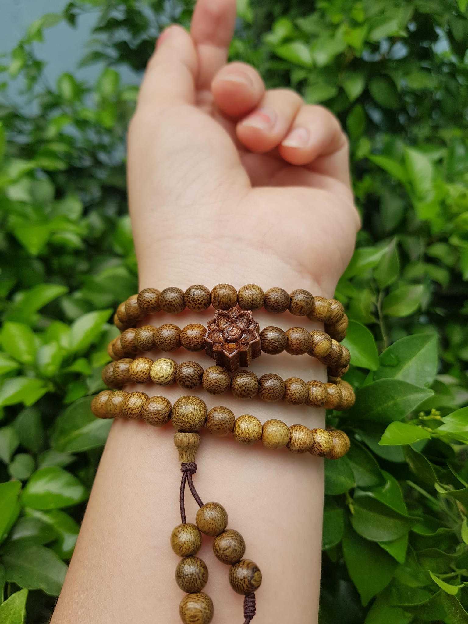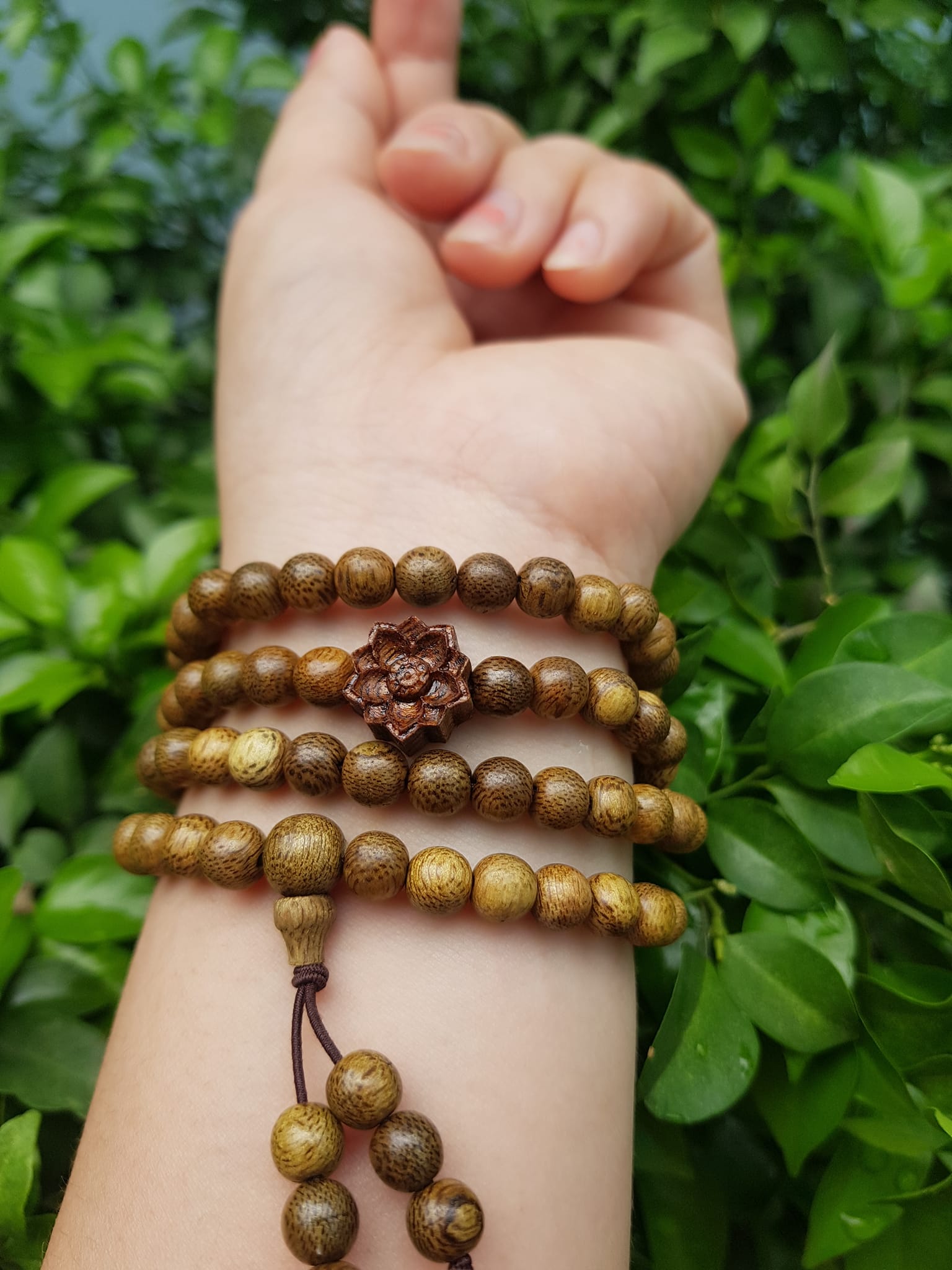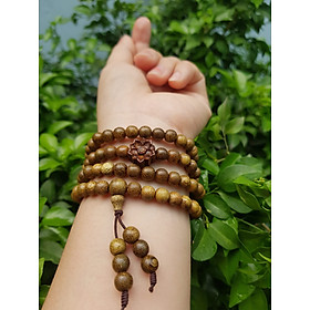 ✨Vòng đeo tay nữ gỗ trầm mix bông hoa sen kiểu quấn tay 4 vòng may mắn tài lộc Size hạt 6mm Màu vàng nâu vân sáng nhẹ đeo tay rất đẹp xinh mùi thơm nhẹ nhẹ ạ