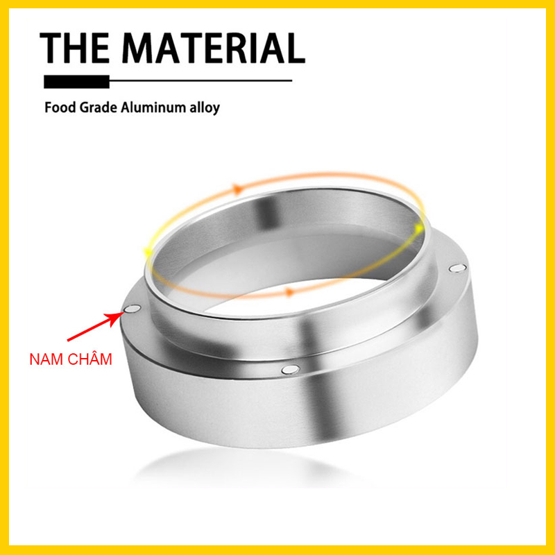 Mua tại TiktokVòng Đông Cà Phê Size 58; 53; 51mm - Dosing Funnel Vòng đong cà phê được lắp trên giỏ lọc trên tay pha Espresso. Vòng được thiết kế với tác dụng ngăn bột cà phê xay không bị đổ ra ngoài trong quá trình cho cà phê vào phễu lọc Sản phẩm được làm bằng nhôm rất an toàn. Bạn có thể vệ sinh phễu dễ dàng bằng nước