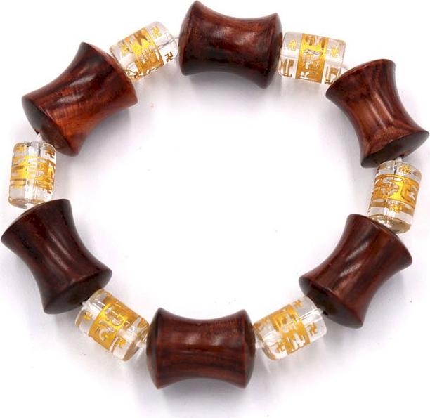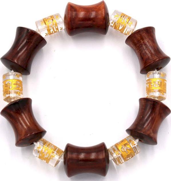 Kích thước : hạt gỗ hồng được khắc hình ống tre với kích thước 14mm x 20mm, kèm khoen thủy tinh khắc Phật chú dài 12mm, vòng chuỗi dài 192mm