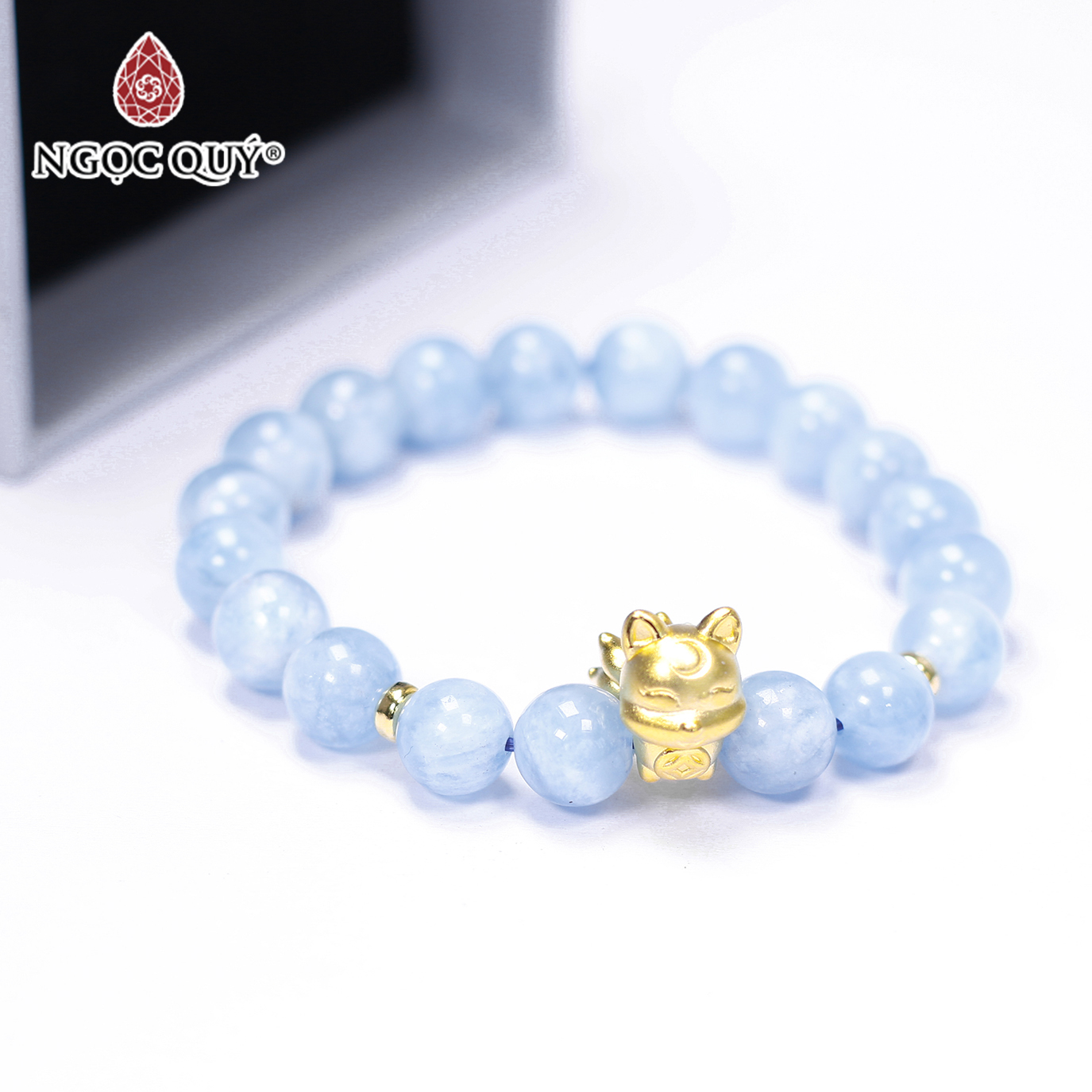 VÒNG TAY ĐÁ AQUAMARINE PHỐI HỒ LY MẠ VÀNG: